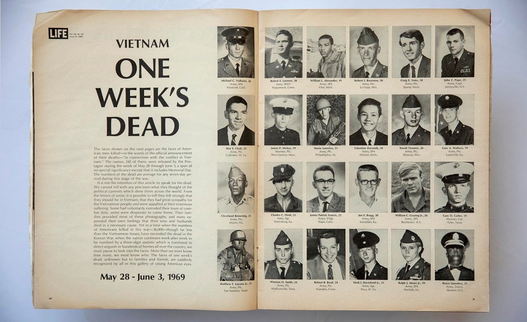 In those days when Google had not even become a dream, I sought out a library where I imagined I could find a unique magazine I remembered. Amid the Vietnam War’s fierce fighting in June, 1969, “Life,” a weekly pictorial magazine that provided our most vivid images of current news, had published a controversial issue in which it printed, one by one, photos of almost everyone of the 242 Americans killed in Vietnam during the just-previous Memorial Day week. Once I found the old magazine, I sat down at a table to turn pages to the article.